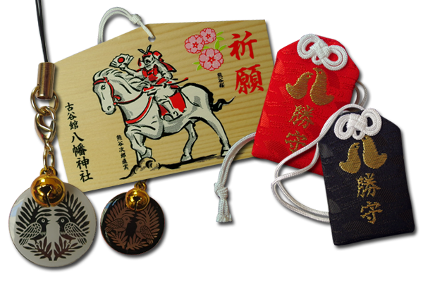 八幡神は武神として武士に崇敬され、その神使である鳩も武士に尊ばれてきました。熊谷氏の家紋の鳩も二羽の鳩が向かい合った「向かい鳩」となっており、これは八幡神の「八」をかたどったものとされています。この八の字(向かい鳩)のお守りは、まさに勝利と武運を願う「勝守り」です。